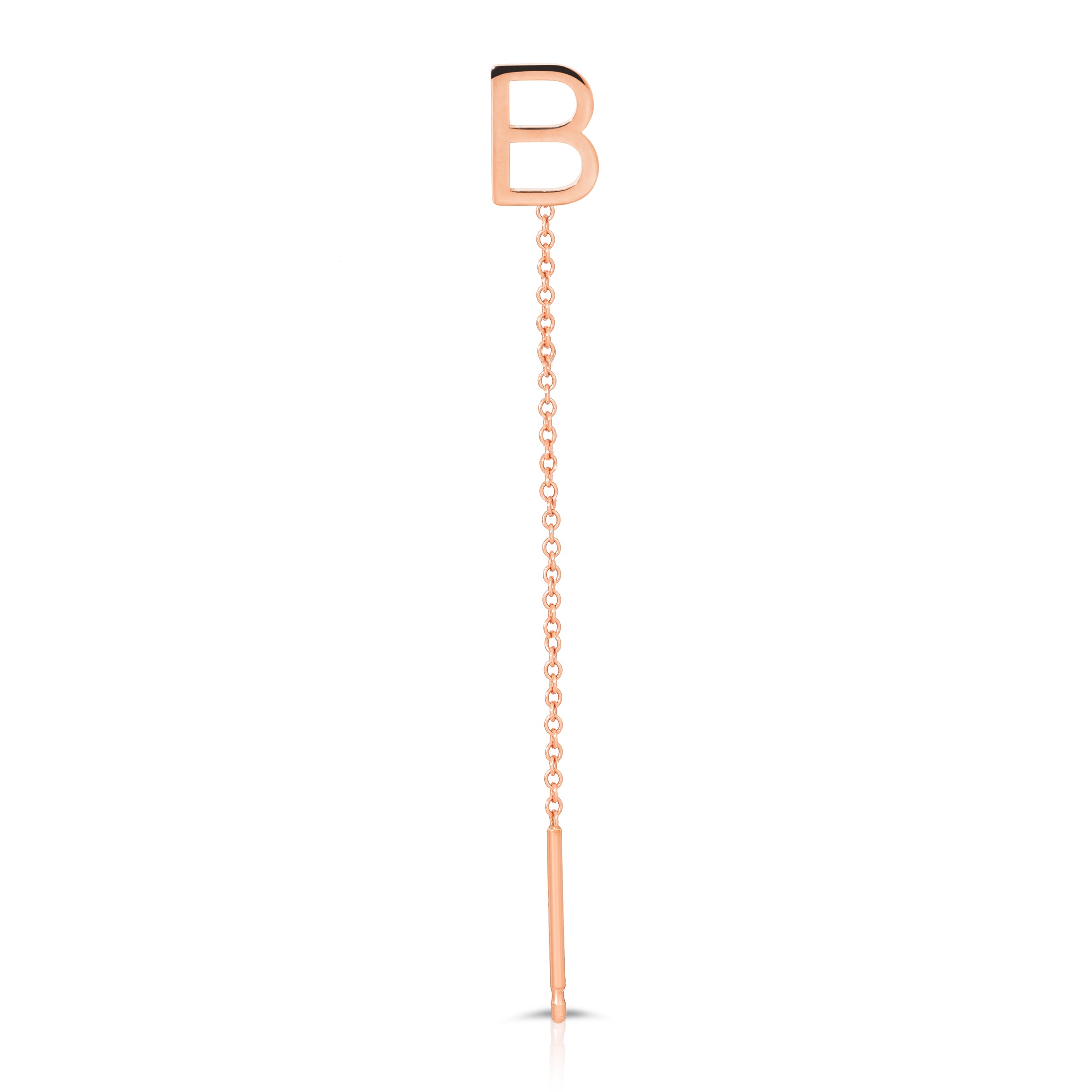This chic, 14K Gold Letter Threader Earring is an easy way to add instant edge to your look. Featuring a delicate cable chain attached to a Letter stud that threads through the ear, you can thread this style through one or multiple piercings for an edgier look.