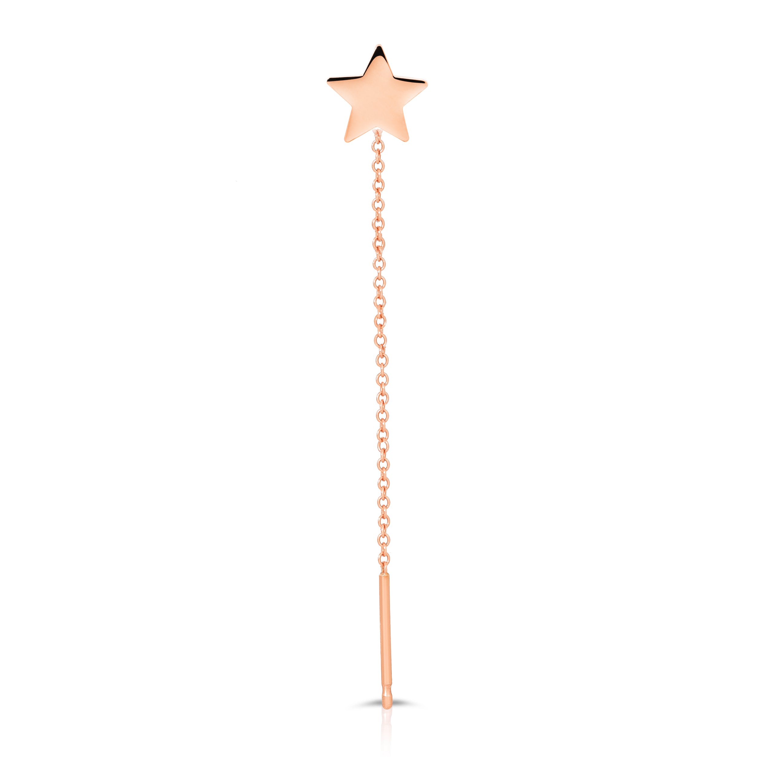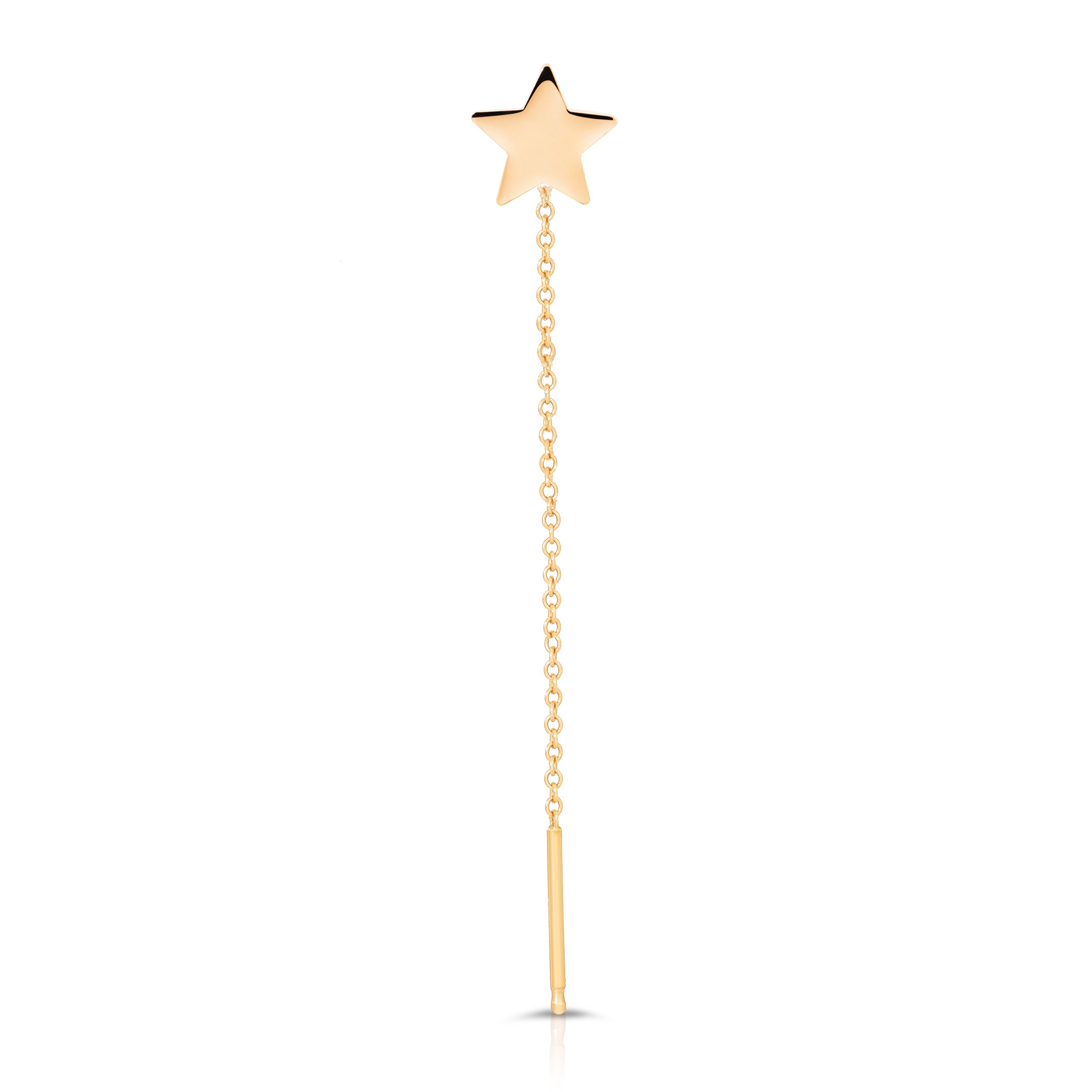 This chic, 14K Gold Charm Threader Earring is an easy way to add instant edge to your look. Featuring a delicate cable chain attached to a charm stud that threads through the ear, you can thread this style through one or multiple piercings for an edgier look.
