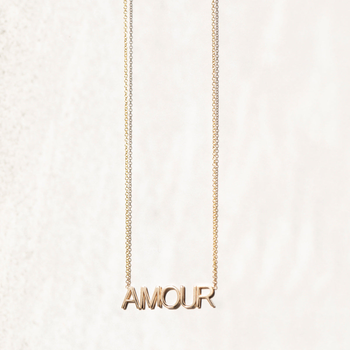 The Maya x Clare V 14k gold Amour Necklace is a "très chic" way to show your love for style. Designed using our signature delicate cable chain and an adjustable length, this necklace is a perfect layering piece to achieve that effortlessly chic French style.