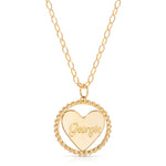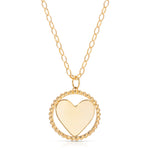 Crafted in collaboration with Kelly McKee Zajfen, this timeless pendant—a heart encircled by a beaded ring represents the community that surrounds, protects and comforts the heart. One side bears the words "Be gentle. In grief.", while the other provides space to engrave the name of your cherished one. Designed with the hope that it allows the gentle space your heart needs on this journey of grieving. Available as a pendant or on an oval rolo chain, and offered in solid 14k gold or sterling silver.