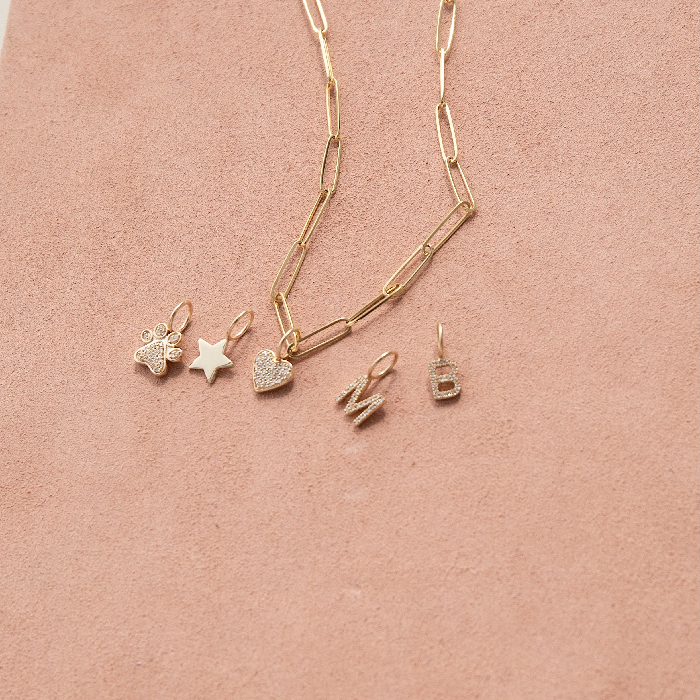 Show off what makes you, well, you with our Charm Pendants. Handmade with love in sunny Los Angeles from solid 14k gold, it's your personalized touch of charm and sparkle! Equipped with a 5 mm jump ring to fit most chains. Wear it solo, stack them up, or mix and match with your favorite charms.