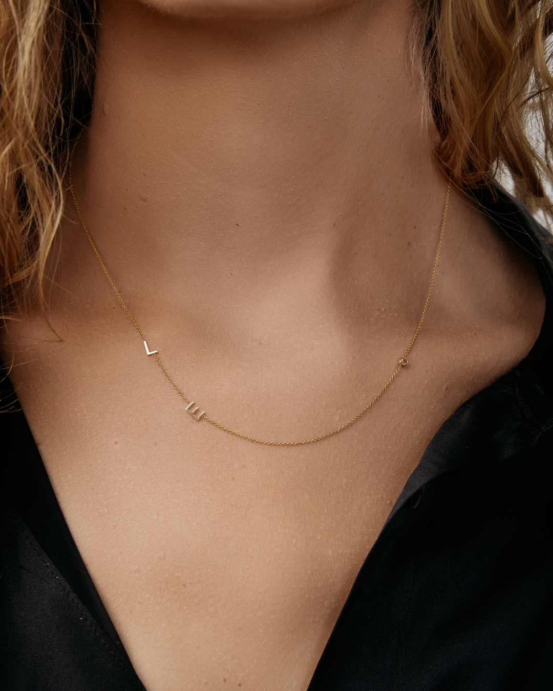 The Original Asymmetrical Letter Necklace has been a brand favorite since its launch in 2008. It has been spotted on Meghan Markle, Mila Kunis (among others) and now you! Choose from letters, charms and birthstones to build a necklace that is uniquely yours. As you build check back to the product photo to see a preview of your design. As these are made to order they are final sale.