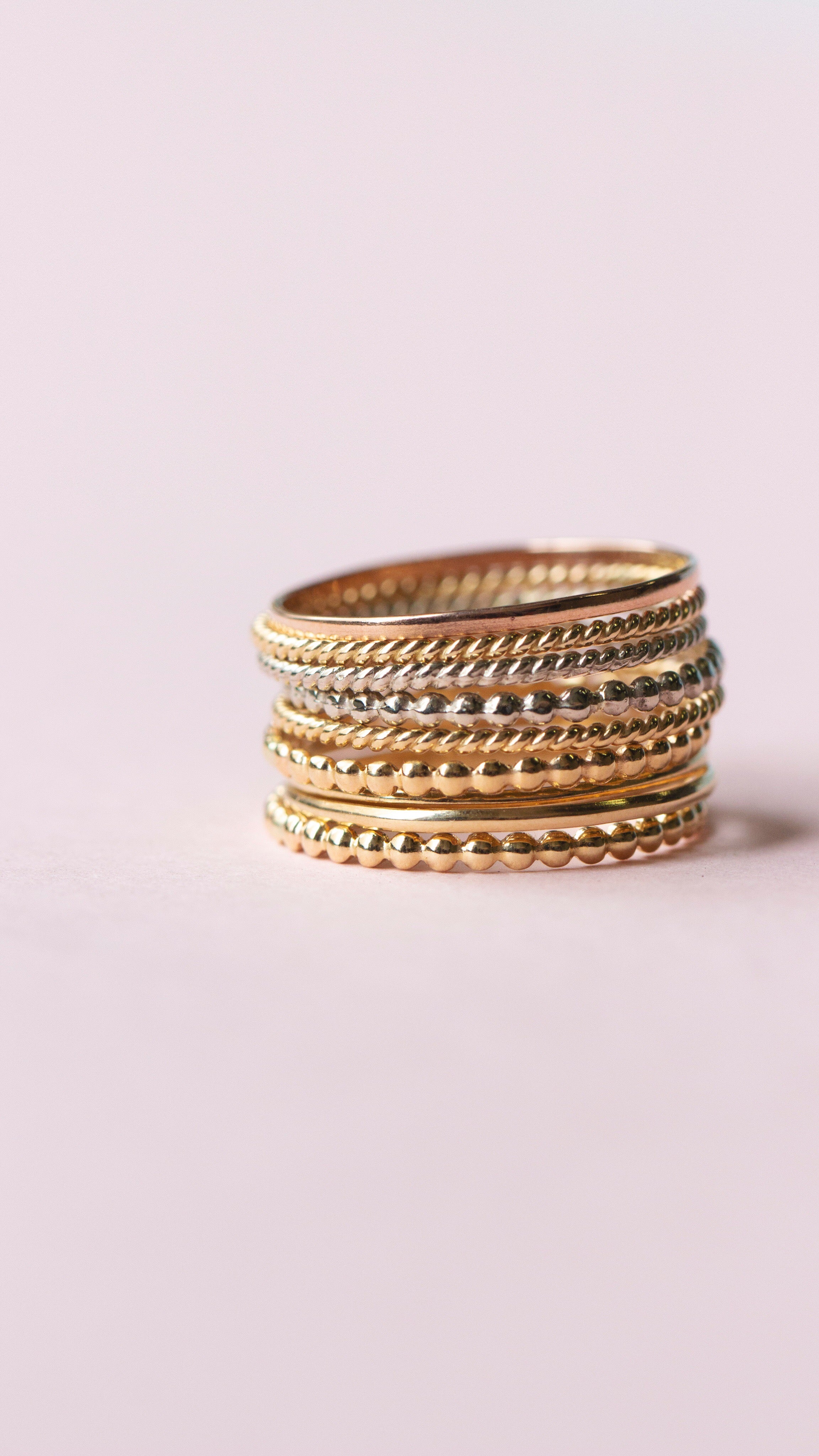 Triple the charm with our Delicate Trio Stacking Rings. Handcrafted in Los Angeles from solid 14k gold, these 1.5 mm beauties are your new go-to for everyday elegance. Available in rose, yellow, and white gold, and in sizes 4-10, they're perfect for mixing, matching, and making your ring stack truly unique.