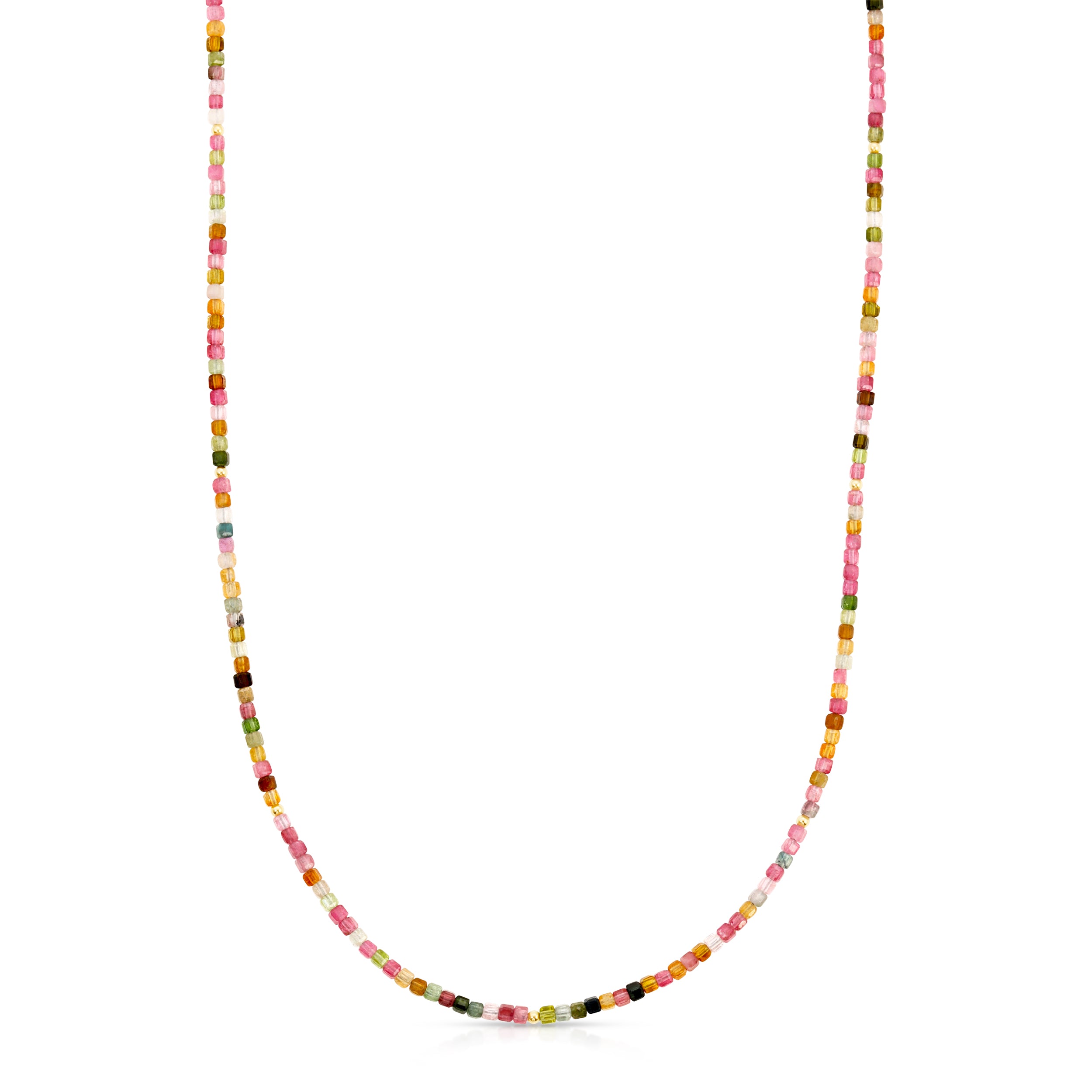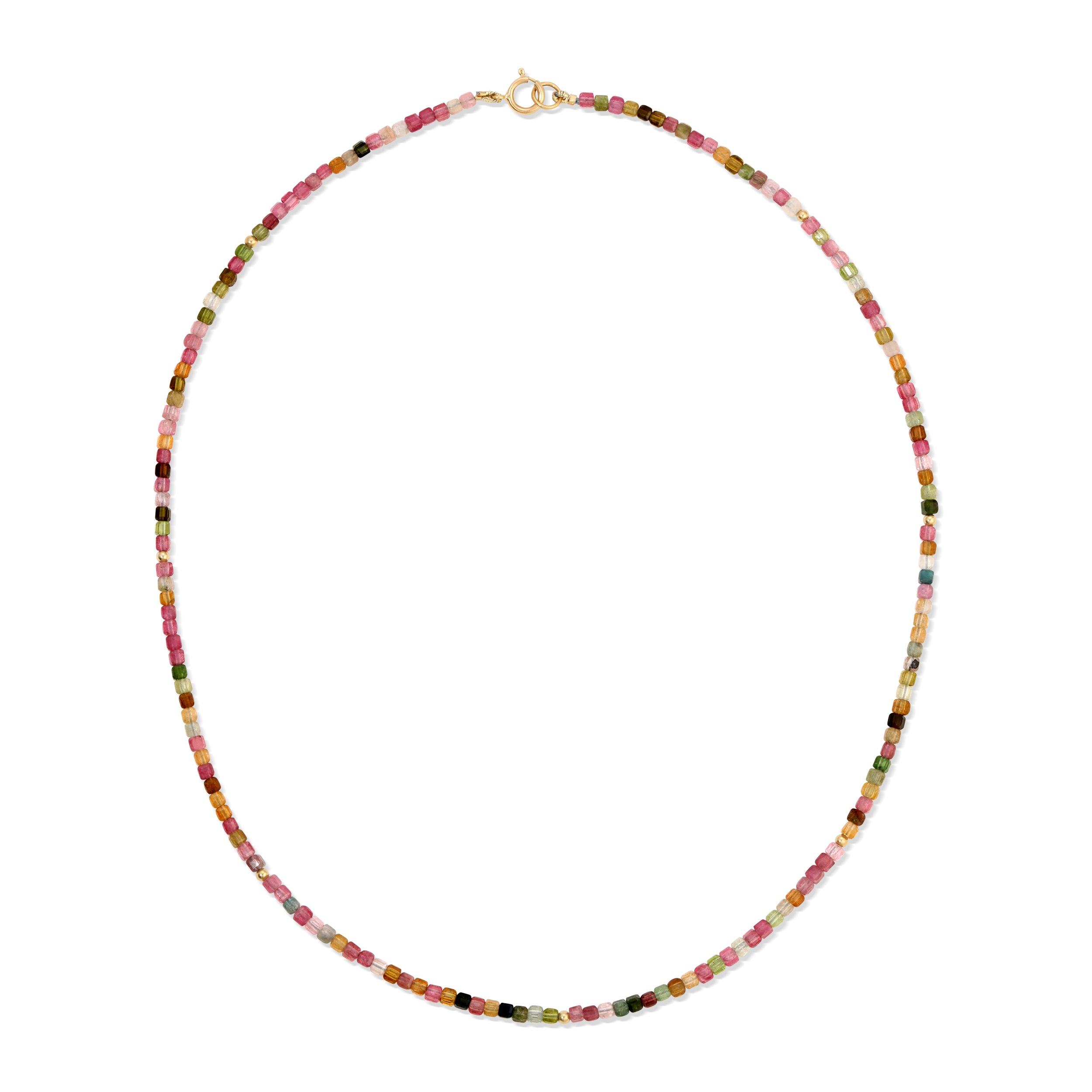 Get into the summer spirit with the Endless Summer Coral Reef Necklace! This vibrant piece features juicy watermelon tourmaline stones and gold fill beads, showcasing shades of green, pink, yellow, and orange. Inspired by the colorful sights of a bustling coral reef, this necklace is a playful addition to any outfit. Each piece is handmade in sunny Los Angeles, adding a touch of California cool to your look. One-of-a-kind with natural bead variations, these necklaces also come with a removable 2-inch extender, letting you style them your way.