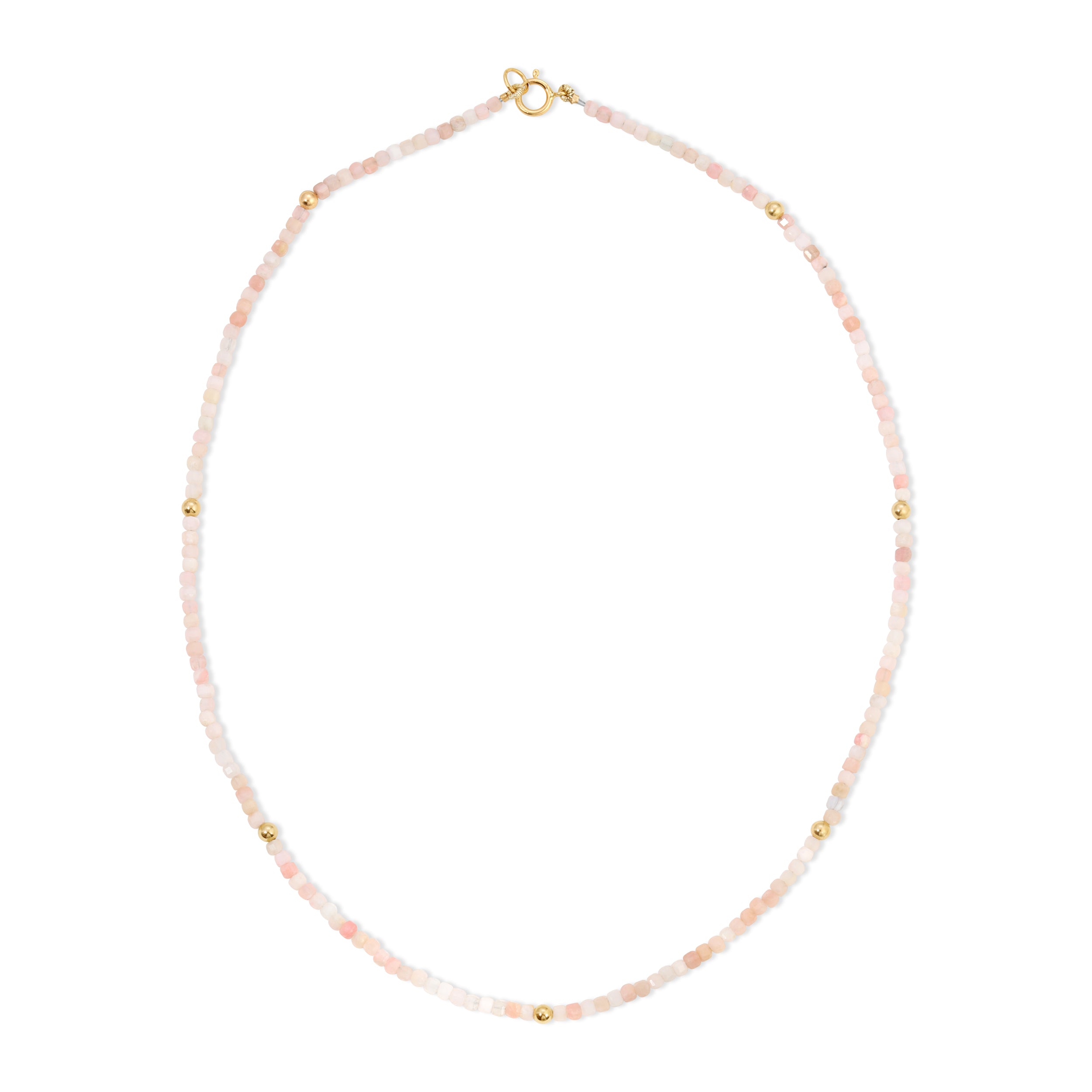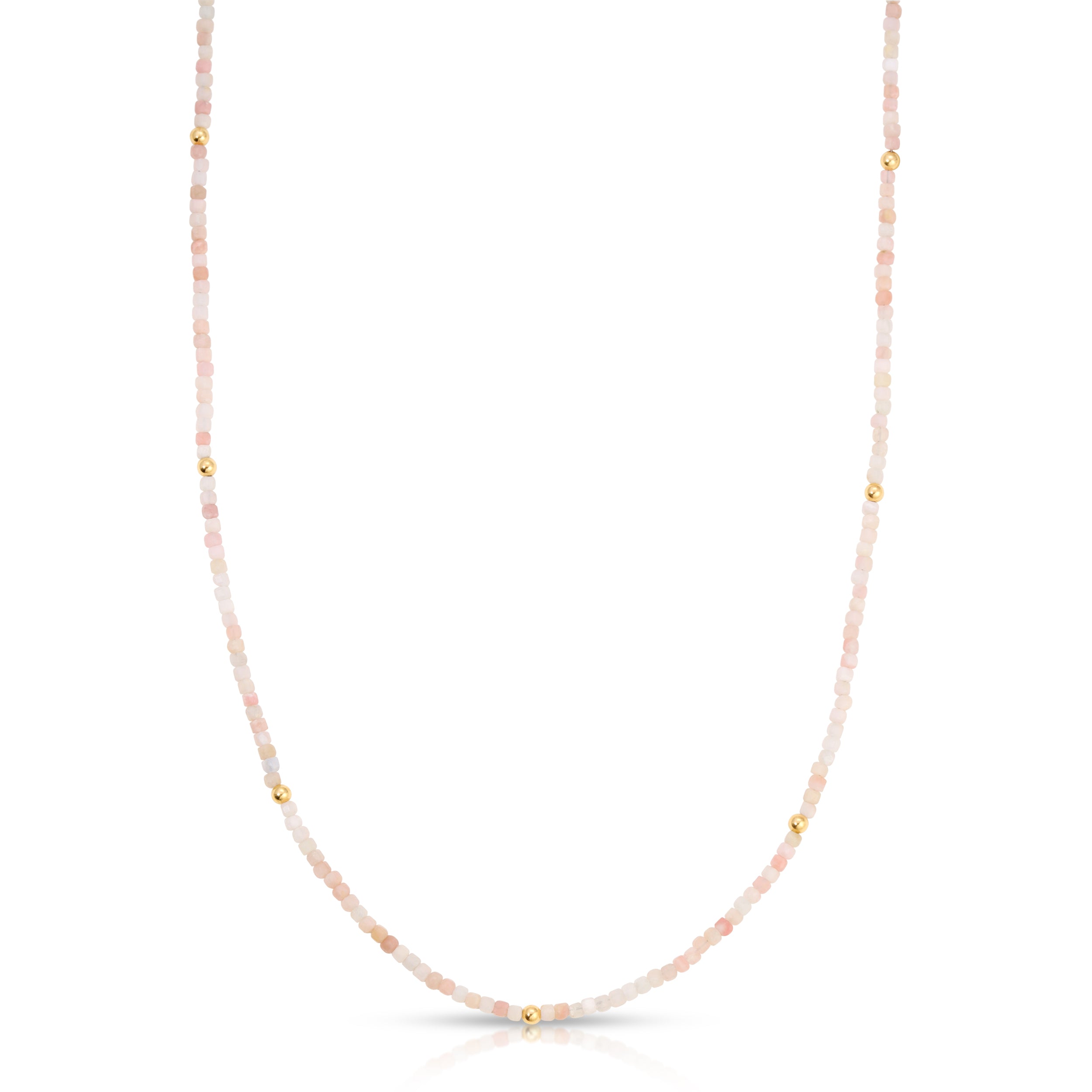 Picture yourself strolling on soft pink sands with the Endless Summer Pink Sands Necklace! This necklace features Peruvian opal in shades from soft white to subtle pink, paired with gold fill beads, showcasing our classic style with a whimsical twist. Each piece is handmade in sunny Los Angeles, adding a touch of California cool to your look. One-of-a-kind with natural bead variations, these necklaces also come with a removable 2-inch extender, letting you style them your way.