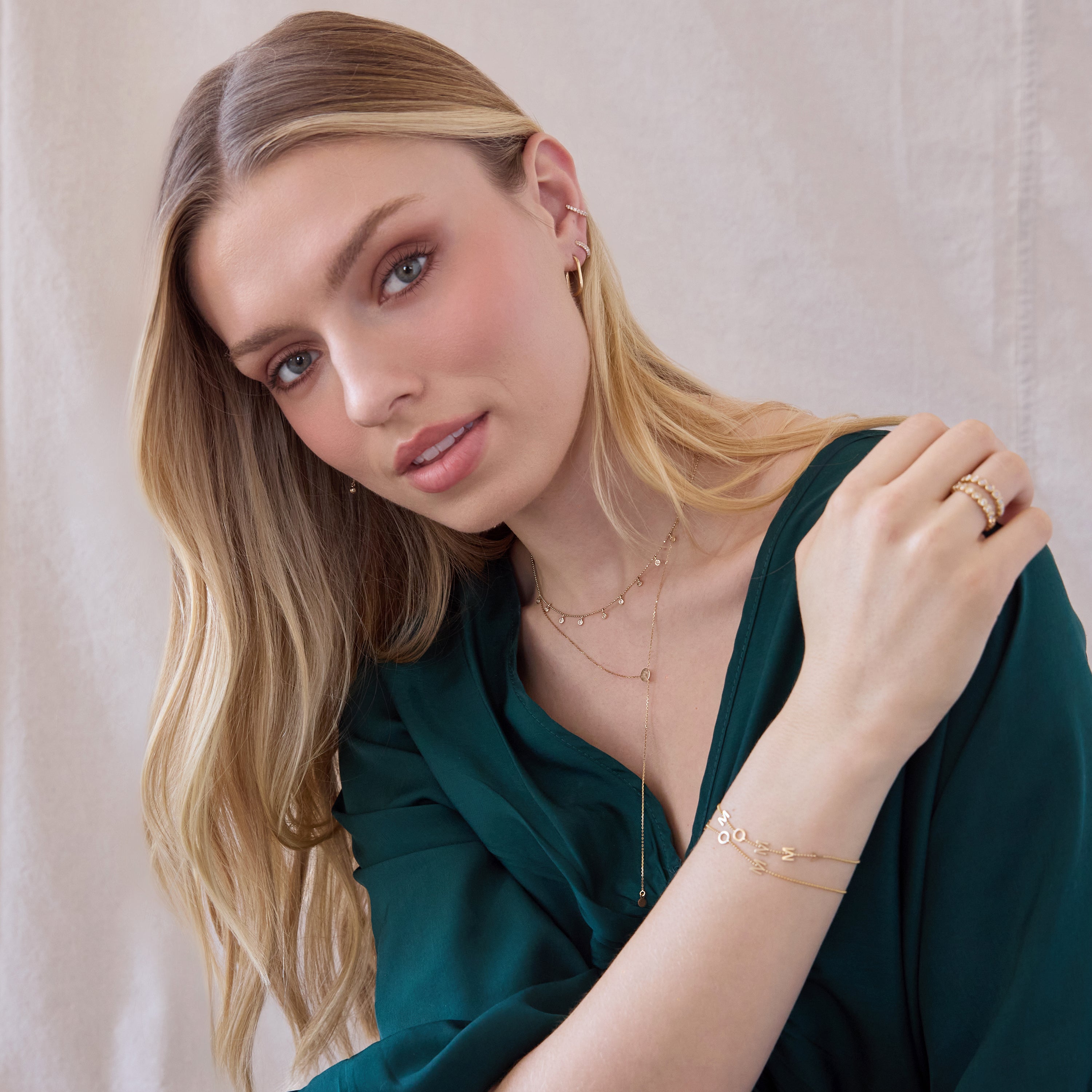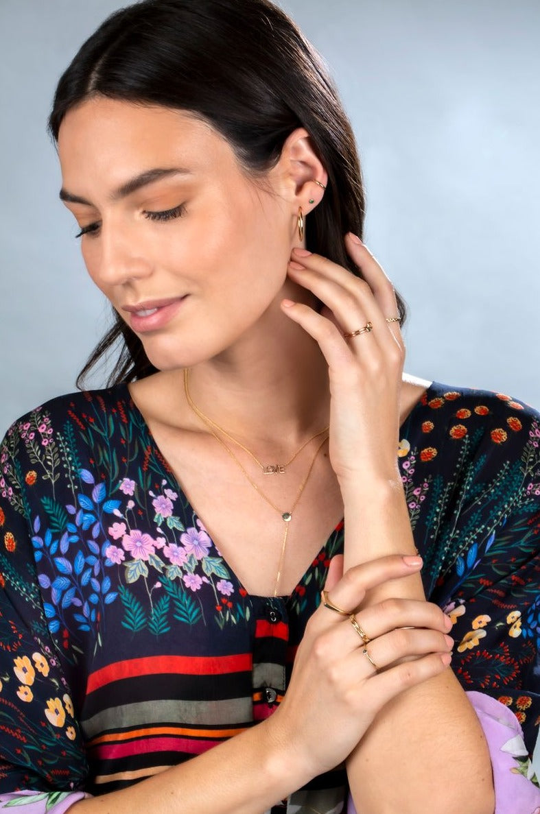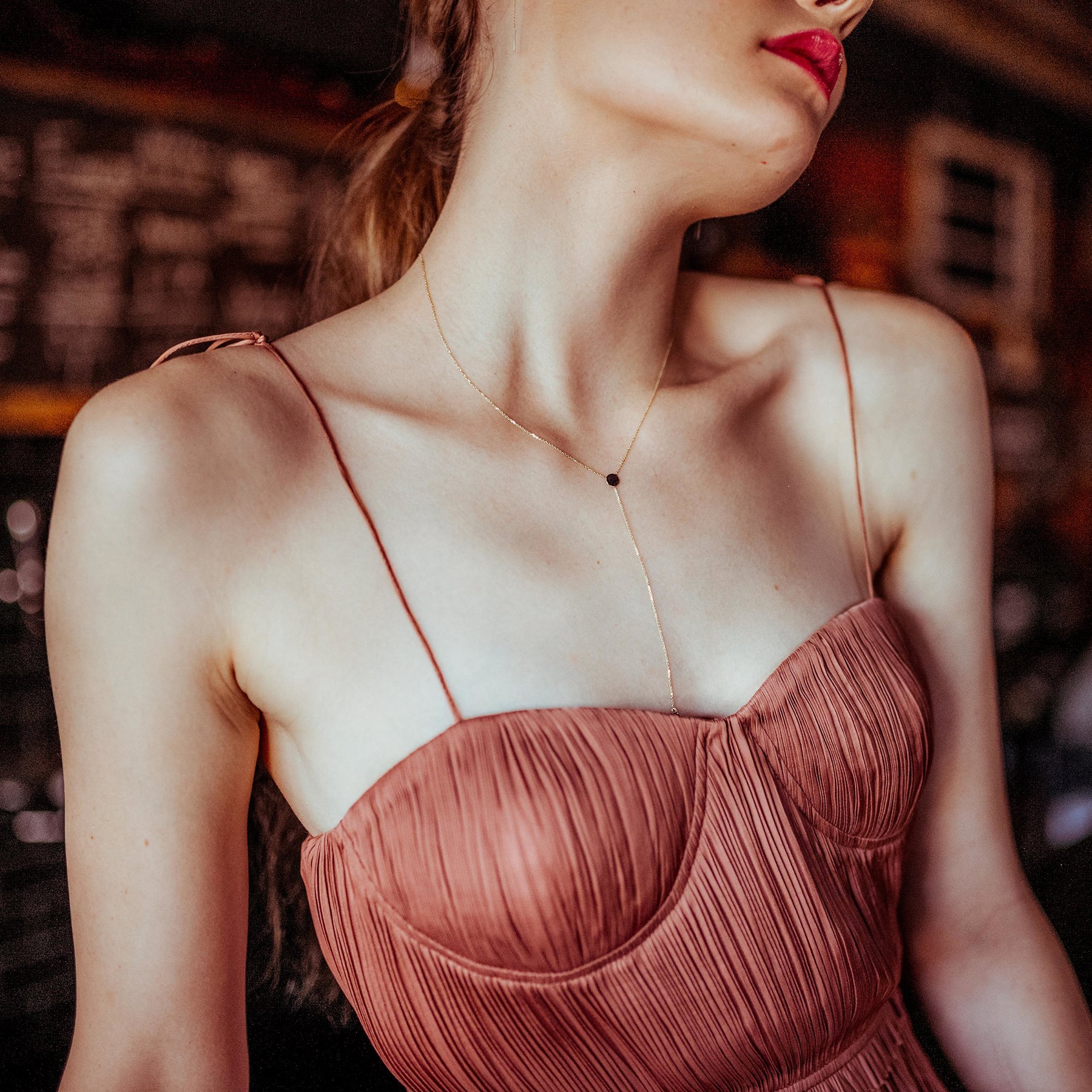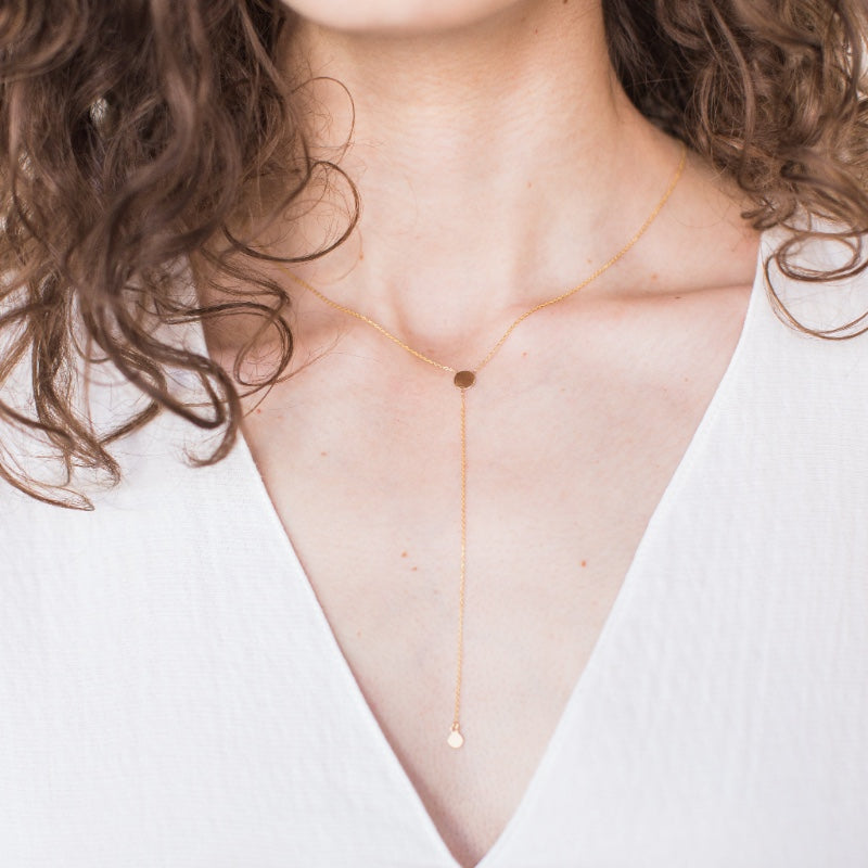 The peek a boo chain hangs low for just the right amount of flirty feel. Wear with a low cut top or over a white tee.
