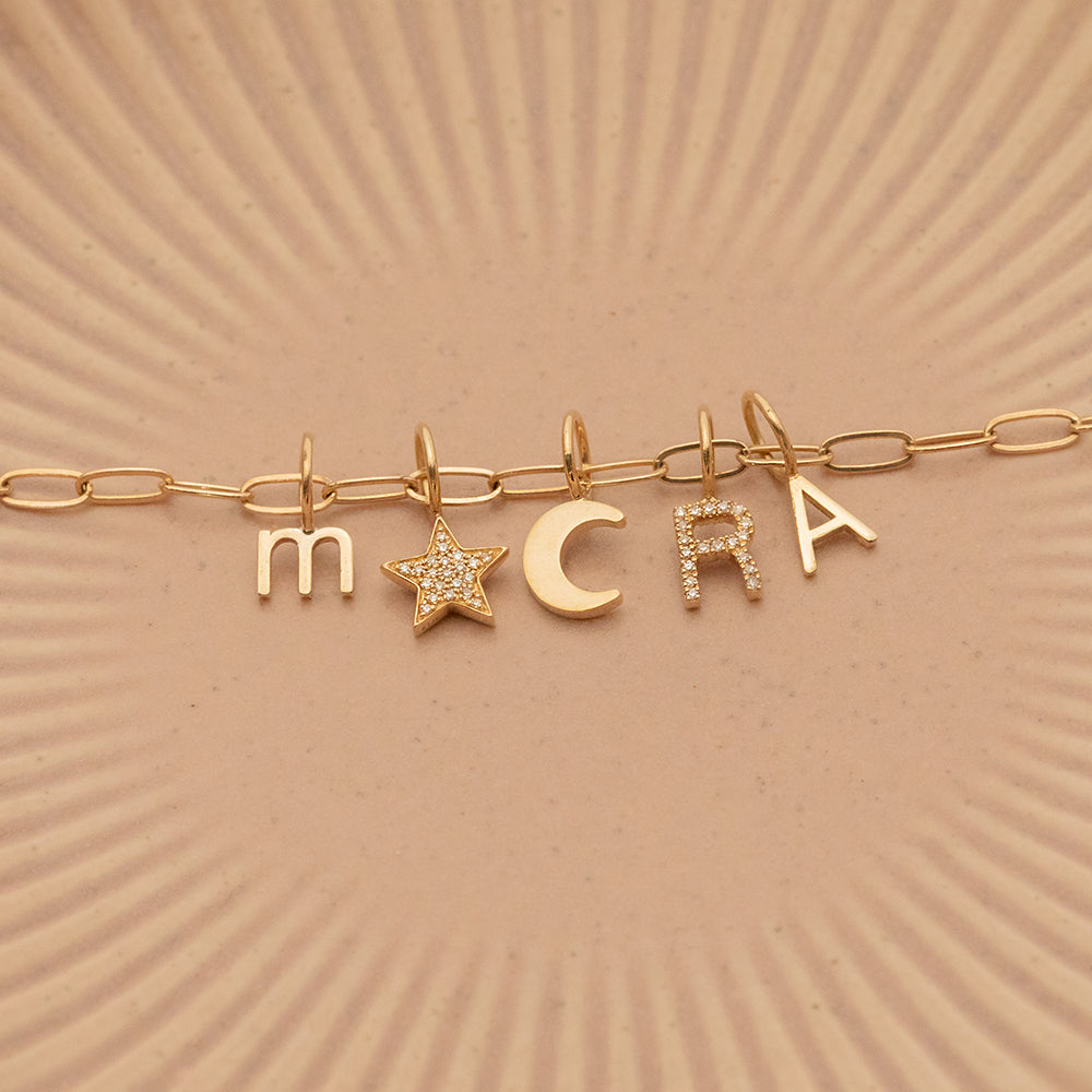 Handcrafted with love in sunny Los Angeles from solid 14k gold, this dazzling 14k Gold Letter Charm adds a timeless touch to any necklace, whether you're celebrating your own initial or someone special. Featuring a 5 mm jump ring to fit most chains, it is perfect for wearing solo, stacking up, or mixing and matching with your favorite charms.
