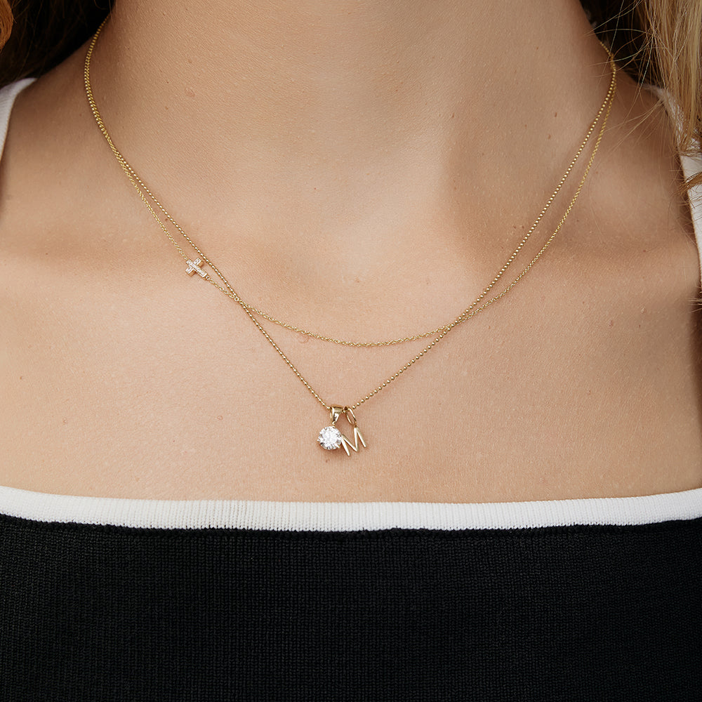 The Gold Diamond Letter Jumble brings together one of our Duchess Diamond Pendants and a single gold letter charm for a look that feels personal yet effortlessly refined. The diamond adds just the right amount of sparkle, while the letter gives the piece its meaning. Wear it to represent someone you love or your own initial. Easy to style, easy to layer, and designed to feel like an everyday favorite from the very first wear.