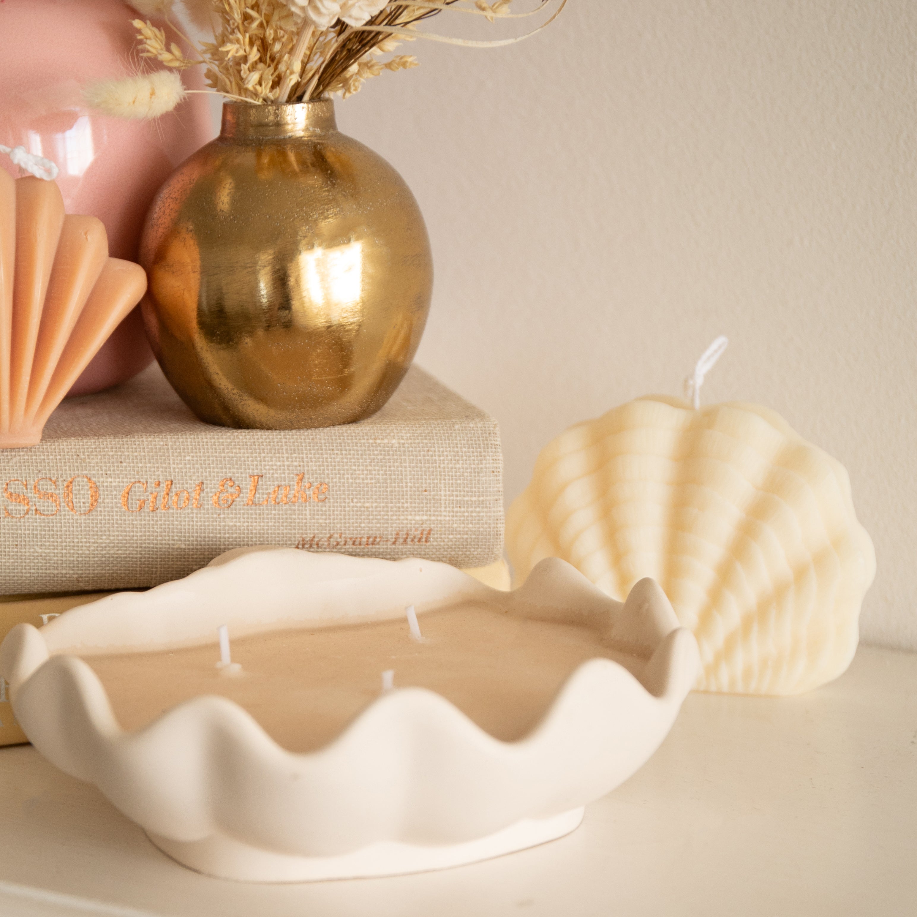 Set the mood with the calming glow of our Large Clam Shell Soy Wax Candle. Crafted with eco-friendly soy wax, a cotton wick, and a luxurious fragrance oil, this candle brings both tranquility and style to your space. With a burn time of 20+ hours, it’s designed to last, offering a peaceful ambiance as you relax and unwind.