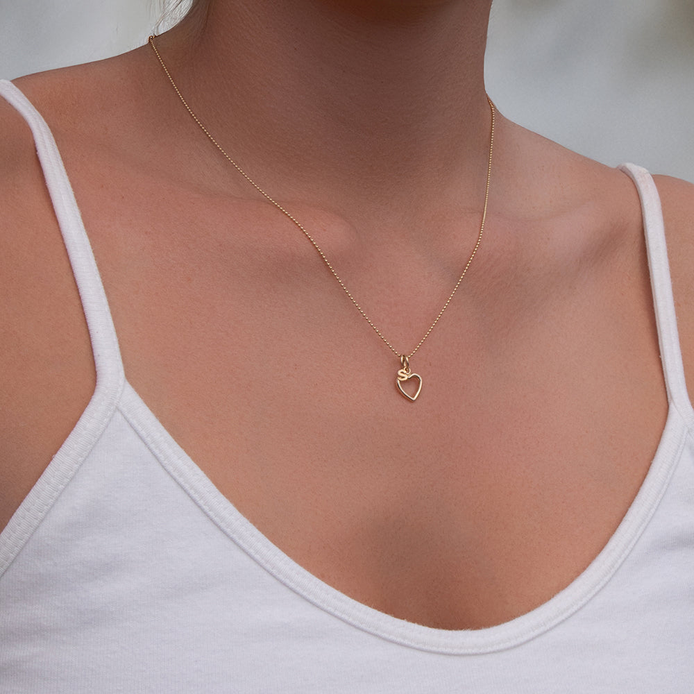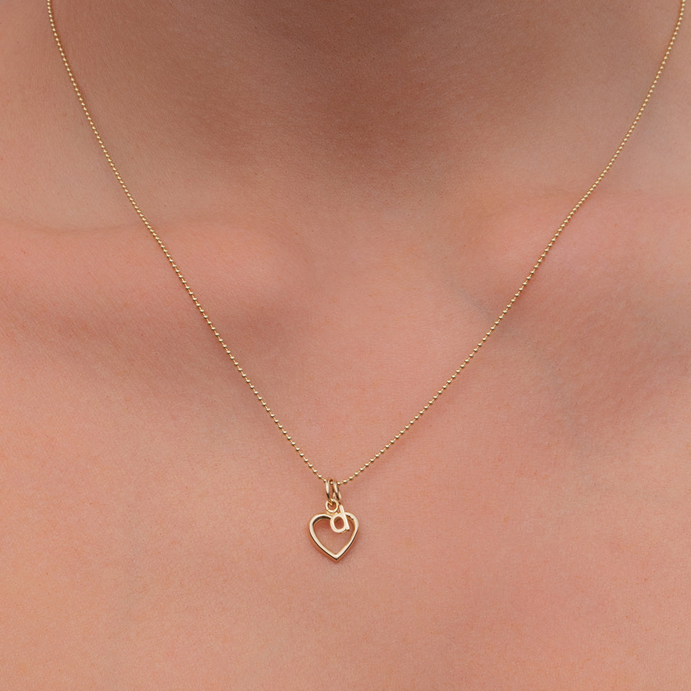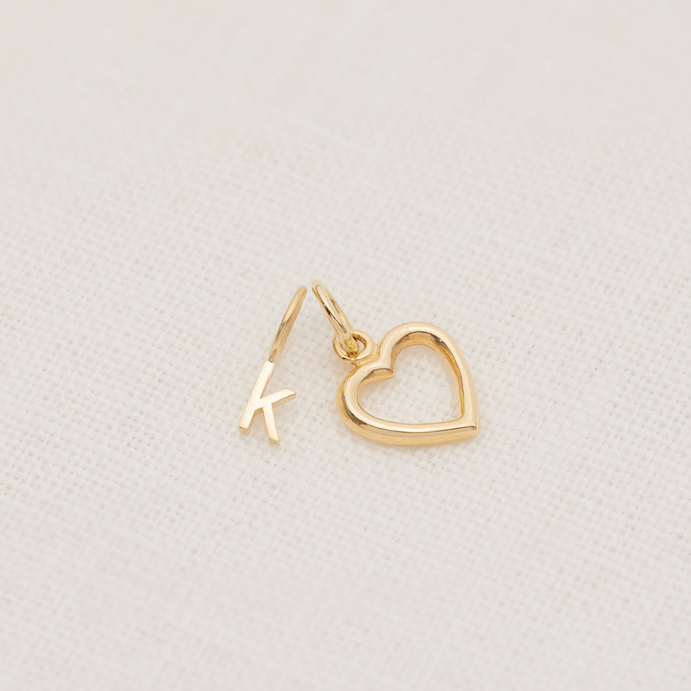 Say it with love and a little gold. The Love Letter Jumble pairs two of our most charming pieces: the Petite Letter Charm, a dainty 14k gold initial that’s all about personal meaning, and the Cut Out Heart Charm, a sweet open-heart silhouette designed to evoke the feel of a cherished childhood keepsake. Worn together, they create a playful yet sentimental duo that feels like your own little love note in necklace form.