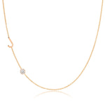 The Original Asymmetrical Letter Necklace has been a brand favorite since its launch in 2008. It has been spotted on Meghan Markle, Mila Kunis (among others) and now you! This necklace is handmade in London from high quality 14k gold. Each 2.5 mm diamond is set in a 3mm gold bezel and soldered onto our signature delicate chain. It's designed to sit on the collar bone. Diamonds are .06 ct.