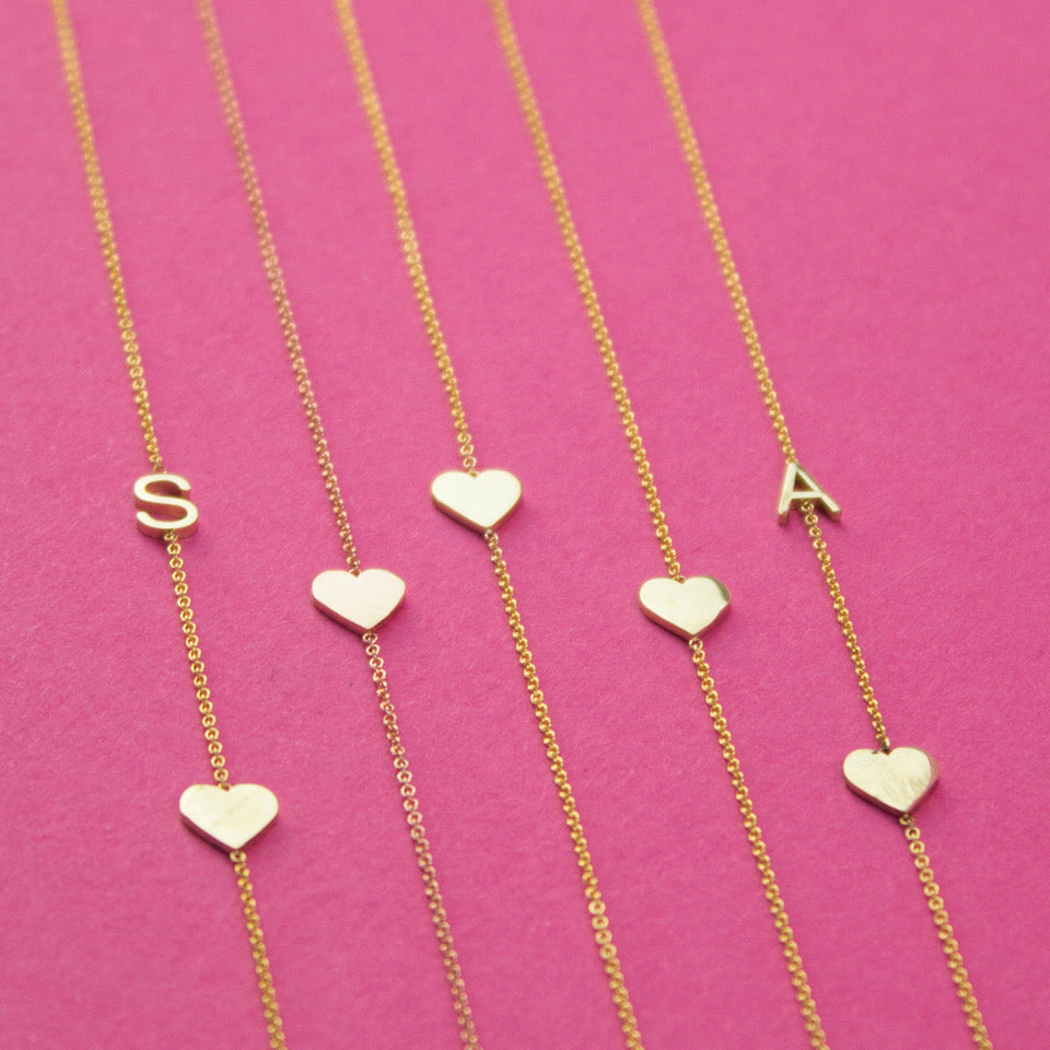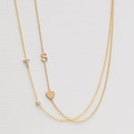 The Monogram Necklace with Heart, a charming fusion of personalization and romance. This delightful necklace features a beautifully crafted monogram of your choice, elegantly accompanied by a dainty heart charm. This enchanting accessory, a symbol of love and individuality, will surely capture hearts wherever you go.