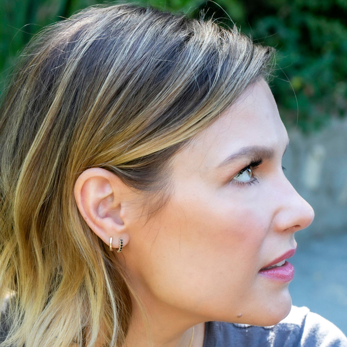 Our 14k yellow gold Onyx Huggie measures at approximately 10mm in diameter with a 2mm width.