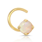 Our Opal Comfort Stud has a 4mm stone set 14k gold with a specially designed curved back that allows for comfort around the clock, even when sleeping.