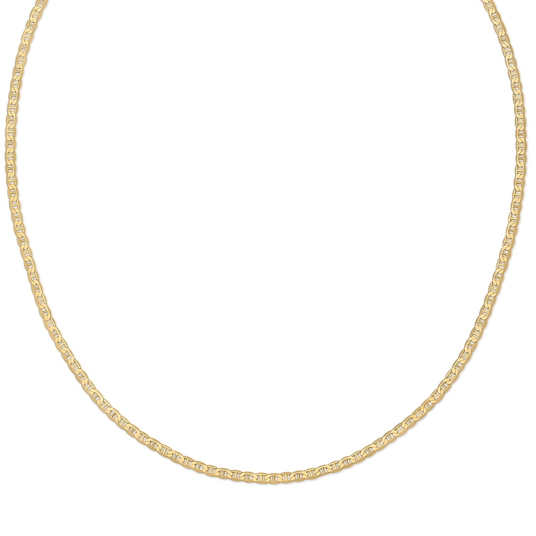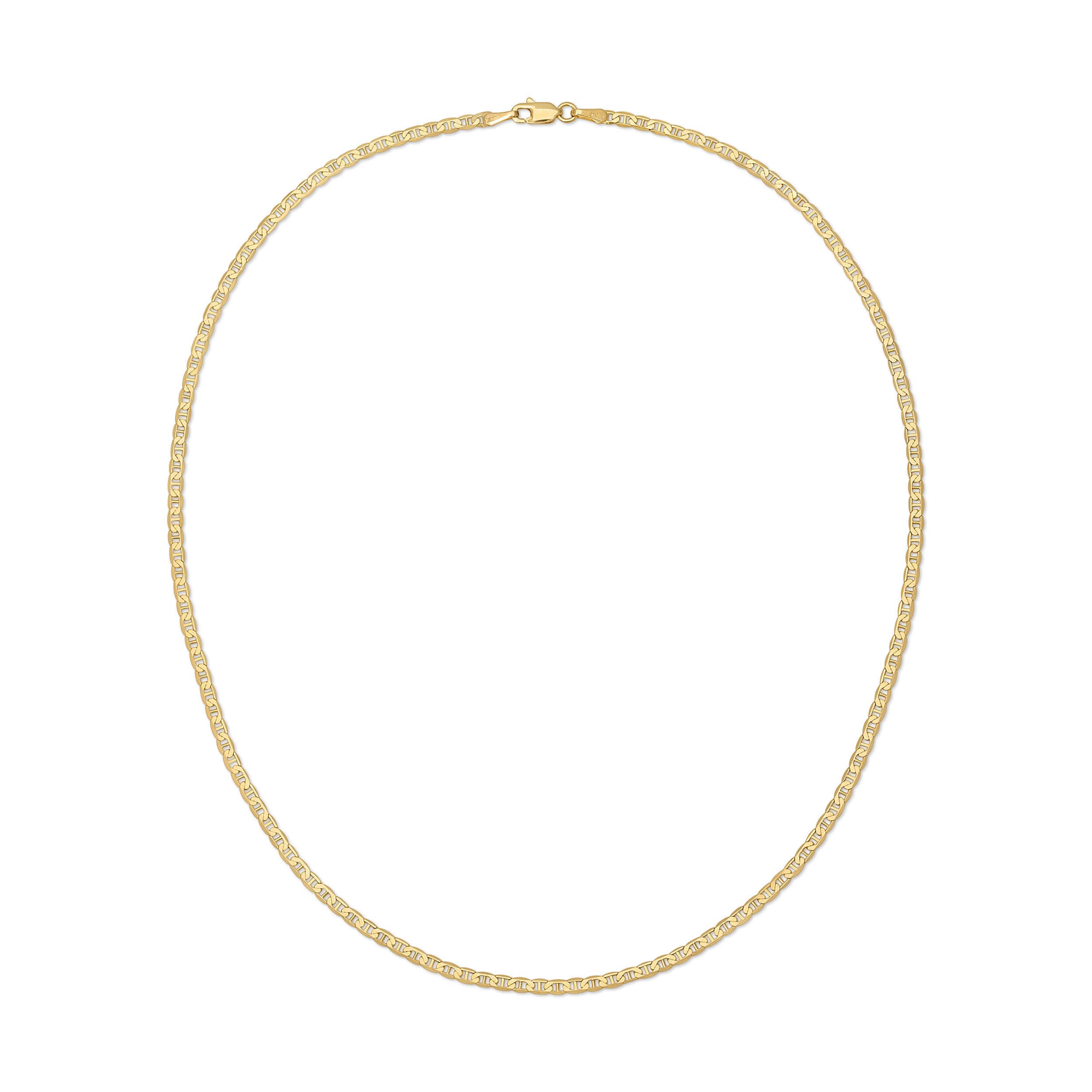 The Curbed Anchor Chain is a 2.5 mm 14k solid gold chain with a spring ring closure.