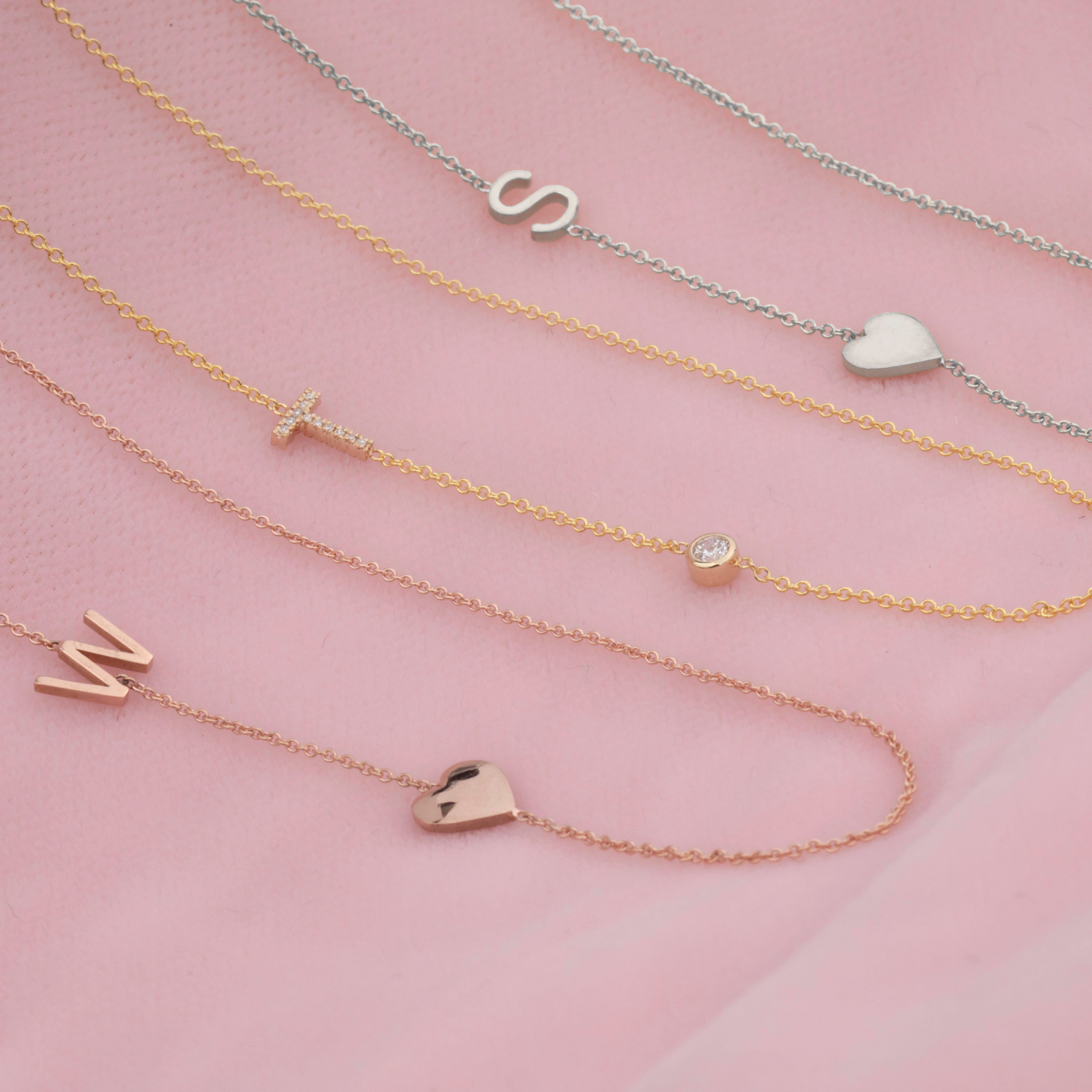 The Monogram Pavé Necklace With Diamond is a timeless piece that combines elegance and personalization. Each necklace showcases a radiant pavé letter of your selection, perfectly complemented by a captivating diamond. Every 2.5mm diamond is meticulously set within a 3mm gold bezel and seamlessly soldered onto our signature delicate chain.