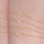 Show off what makes you, well, you with our Petite Nameplate Necklace. Transform any name or word into the sweetest statement piece you'll ever lay eyes on. Handmade with love in sunny Los Angeles from solid 14k gold, it's your personalized touch of charm and sparkle!