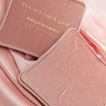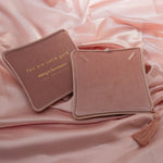 A keepsake in itself. This blush pink velvet jewelry box is designed to make every piece feel even more special. Lined in plush velvet and finished with delicate gold-foil lettering, it’s equal parts romantic and refined.