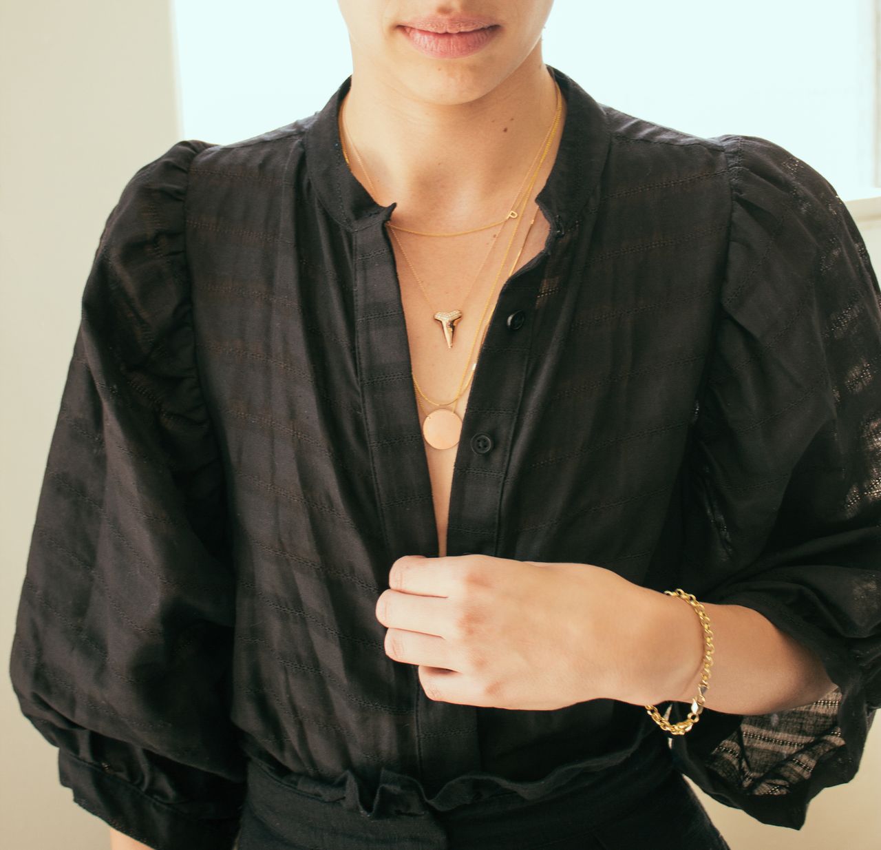 Sharktooth with pavé diamond top on a delicate cable chain.