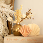 This small Gold Bud Vase adds a touch of shimmering charm to your space. Perfect for displaying the Ivory Wildflower mini bouquet that comes with it. The dried assortment includes bunny tails, sola flower, and flax to create the perfect mix of natural and shine. With its radiant gold finish, it adds warmth and elegance to any setting, effortlessly complementing minimalist or glamorous décor. Elevate your home with this timeless accent piece.