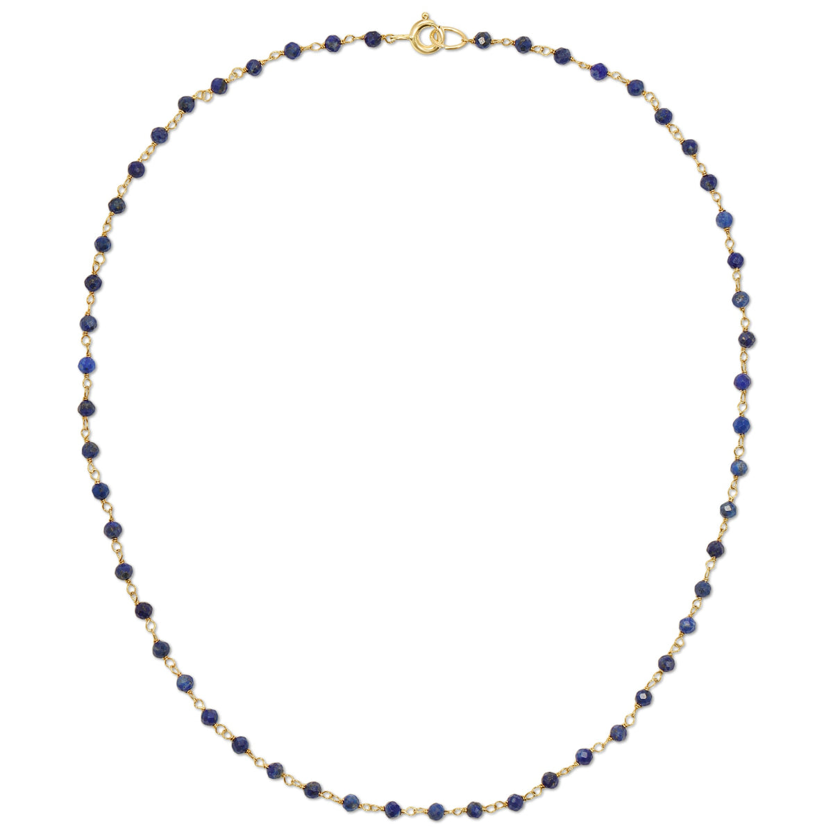 Each necklace has 3mm natural faceted lapis beads hand wrapped with 10k yellow gold wire. Available in lengths up to 30”.