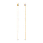 14K yellow gold pull-through earring with a 2.5 mm bezel-set diamond accent. 1.5" length. Sold as a single earring.