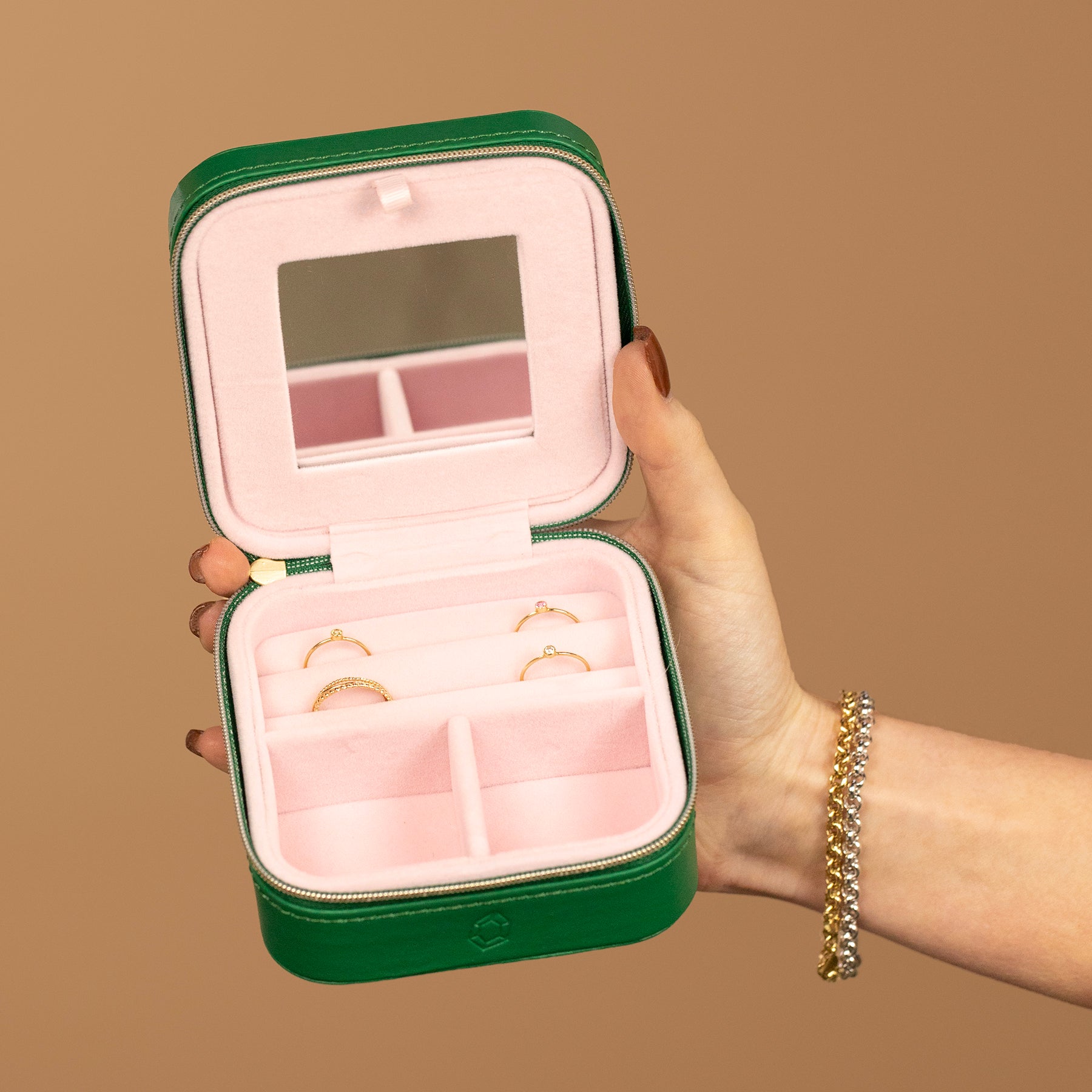 Beautiful and functional, our Signature Travel Jewelry Case is perfect for organizing jewelry at home or away. Designed with cushioned storage for rings, multiple compartments for earrings and necklaces + a mirror for getting ready.