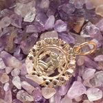 To celebrate our 20th year in business we've decided to reintroduce a Maya Brenner classic. These intricate Zodiac Pendants are 14k yellow gold and measure 7/8". They are strung on The Slide Chain, a 14k yellow gold box chain that can be adjusted from choker length to 22".