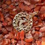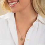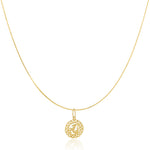 To celebrate our 20th year in business we've decided to reintroduce a Maya Brenner classic. These intricate Zodiac Pendants are 14k yellow gold and measure 7/8". They are strung on The Slide Chain, a 14k yellow gold box chain that can be adjusted from choker length to 22".