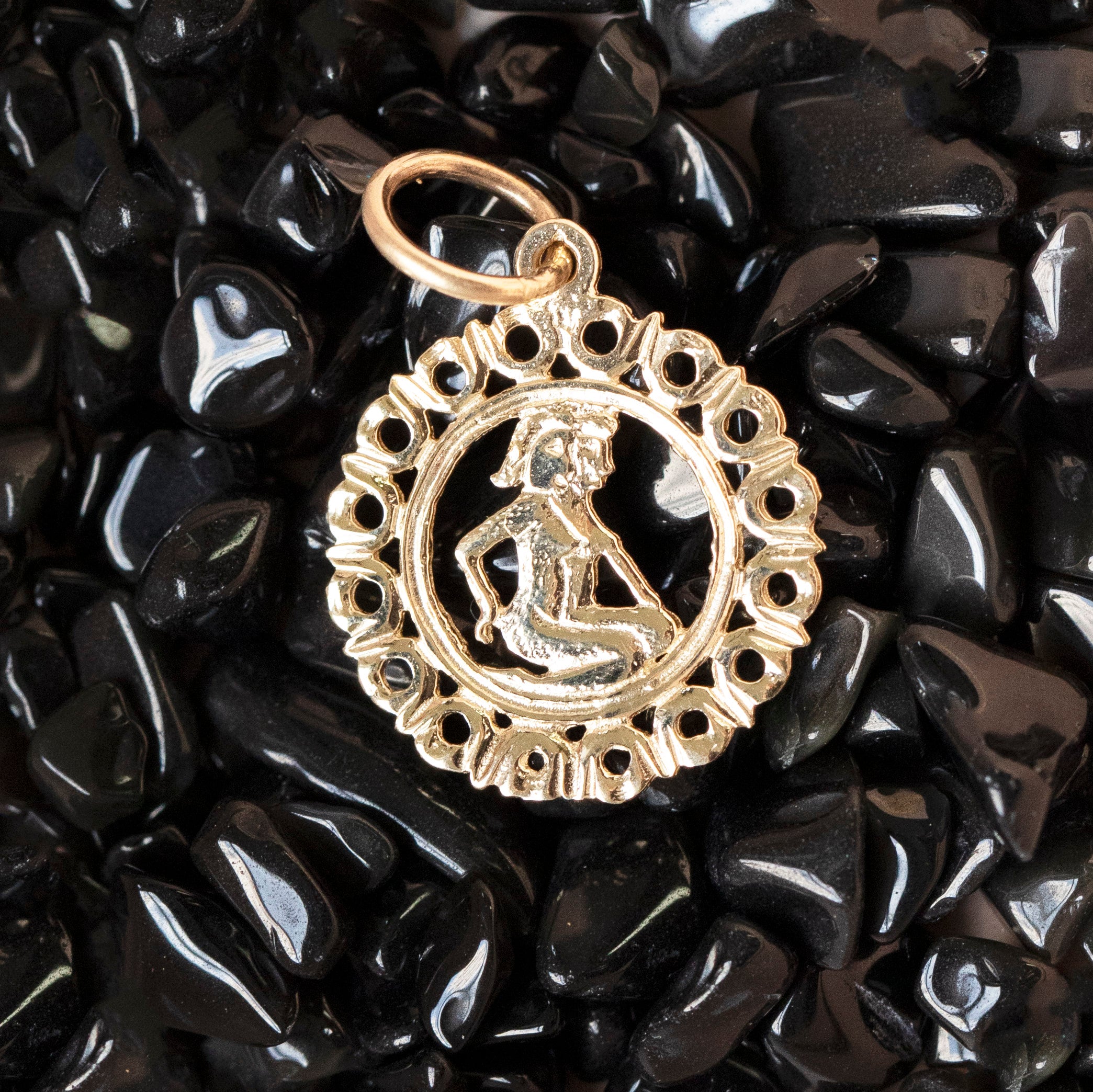 To celebrate our 20th year in business we've decided to reintroduce a Maya Brenner classic. These intricate Zodiac Pendants are 14k yellow gold and measure 7/8". They are strung on The Slide Chain, a 14k yellow gold box chain that can be adjusted from choker length to 22".