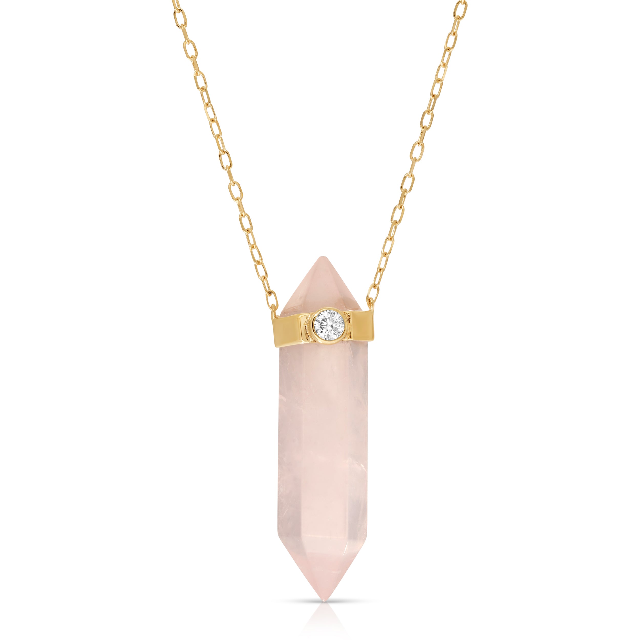 Made in collaboration with Abigail Spencer, The Love Retreat Necklace is made with rose quartz which is recognized as the stone of unconditional love (including self love). This rose quartz pendant will help you focus on loving thoughts, rejuvenation and harmony. A subtle wearable crystal piece to protect your peace…so every day can be your retreat.