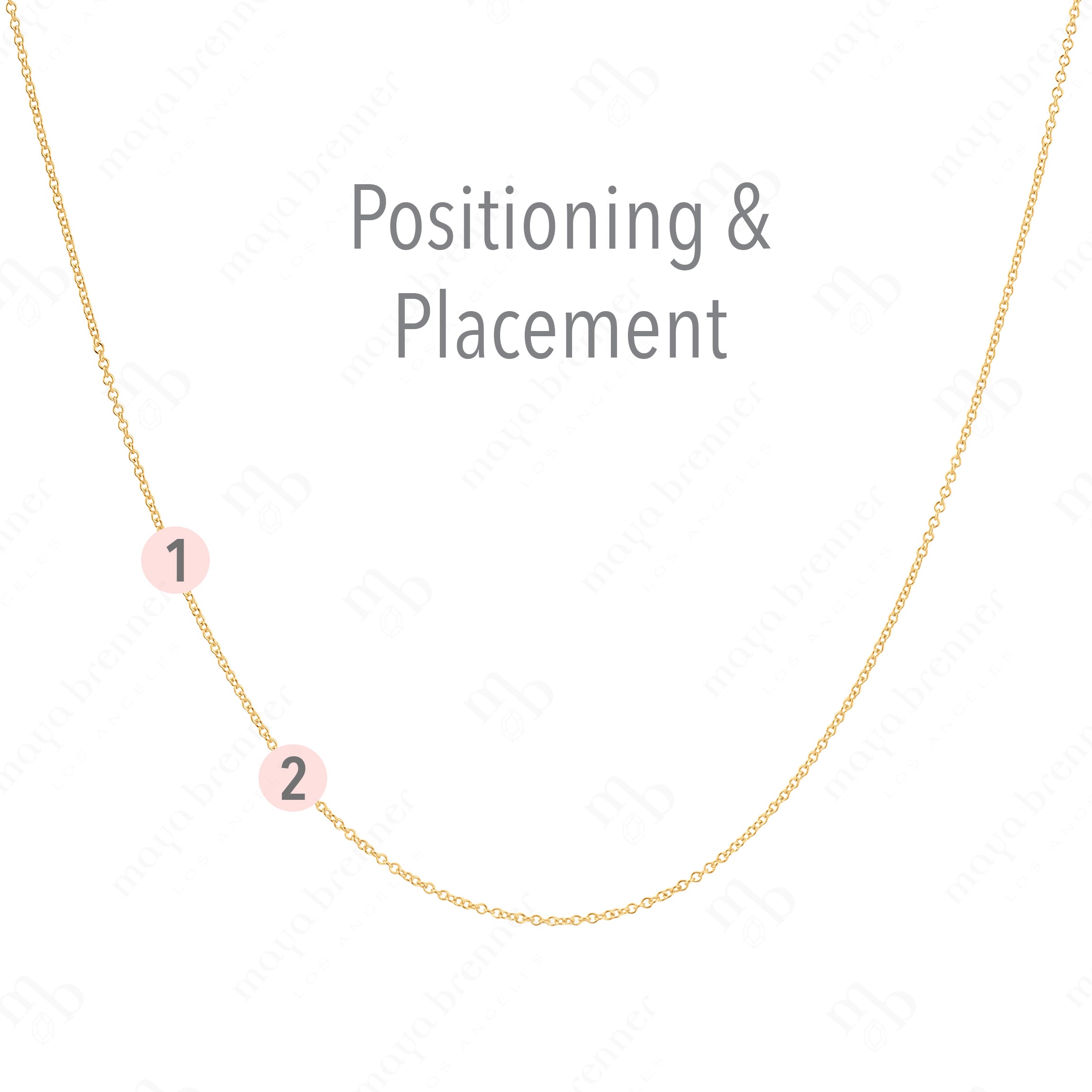 Due to the custom nature of this necklace we are unable to accept returns or exchanges. Please review the placement and sizing chart carefully and don't hesitate to reach out to us with any questions.