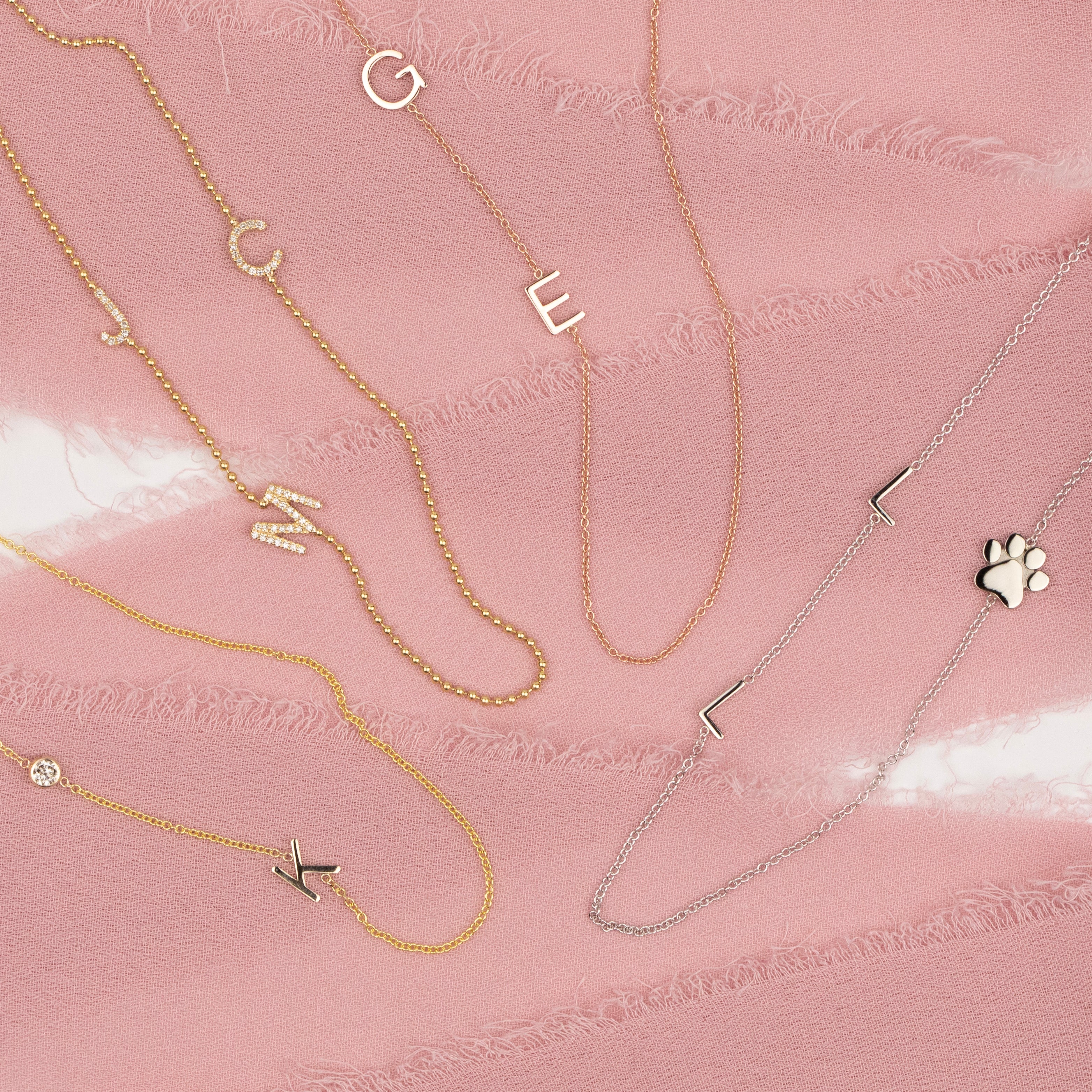 The Original Asymmetrical Letter Necklace has been a brand favorite since its launch in 2008. It has been spotted on Meghan Markle, Mila Kunis (among others) and now you! Choose from letters, charms and birthstones to build a necklace that is uniquely yours. As you build check back to the product photo to see a preview of your design. As these are made to order they are final sale.