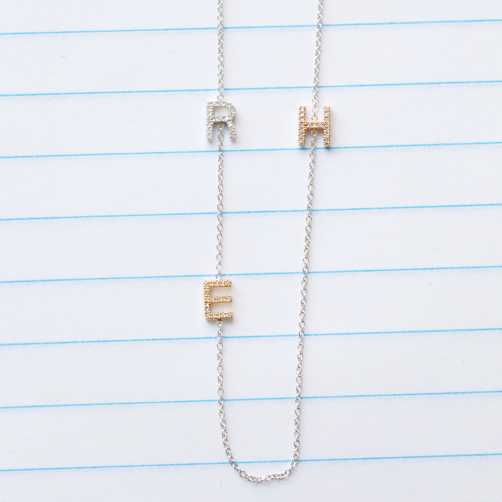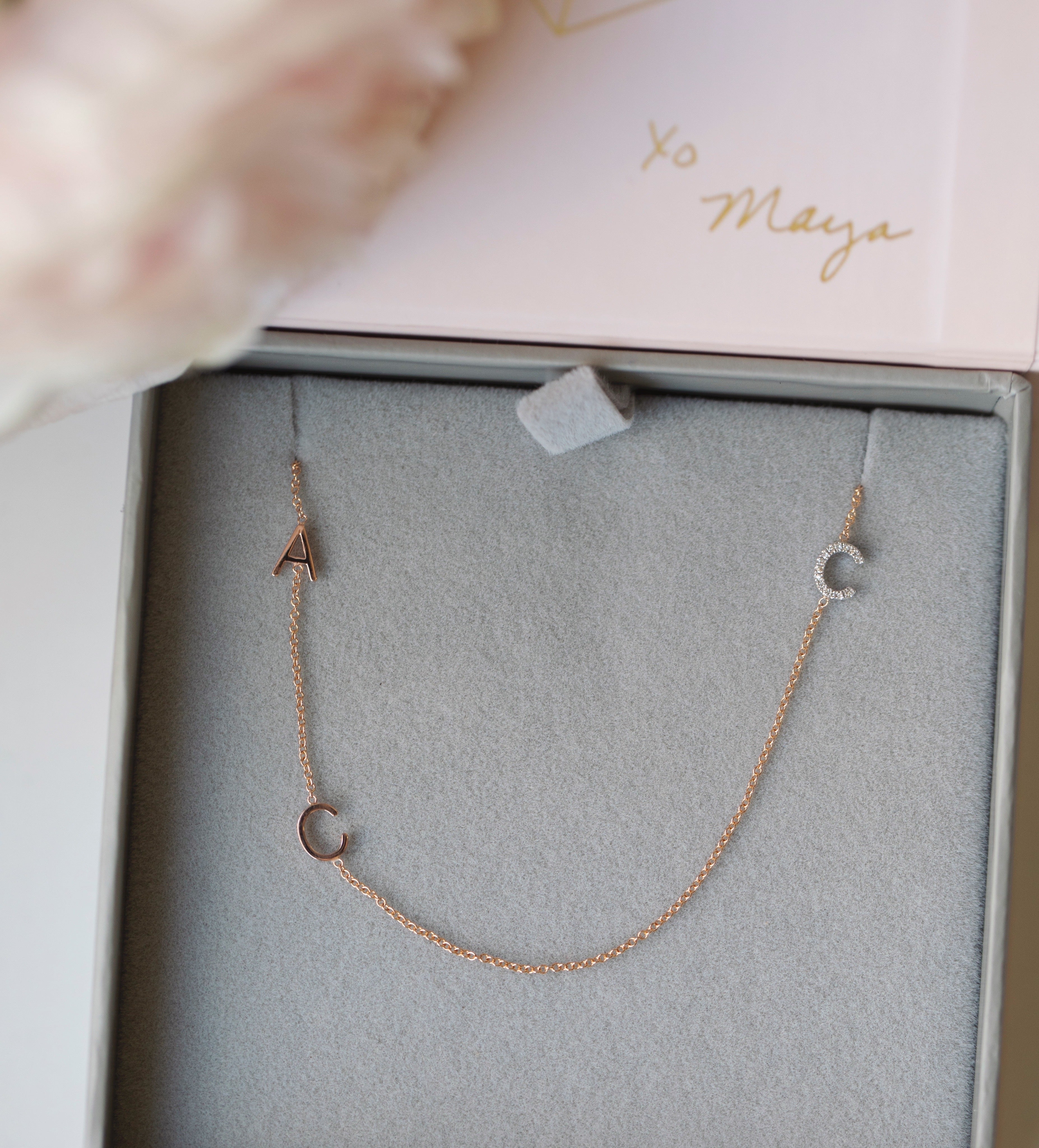 The Original Asymmetrical Letter Necklace has been a brand favorite since its launch in 2008. It has been spotted on Meghan Markle, Mila Kunis (among others) and now you! Choose from letters, charms and birthstones to build a necklace that is uniquely yours. As you build check back to the product photo to see a preview of your design. As these are made to order they are final sale.